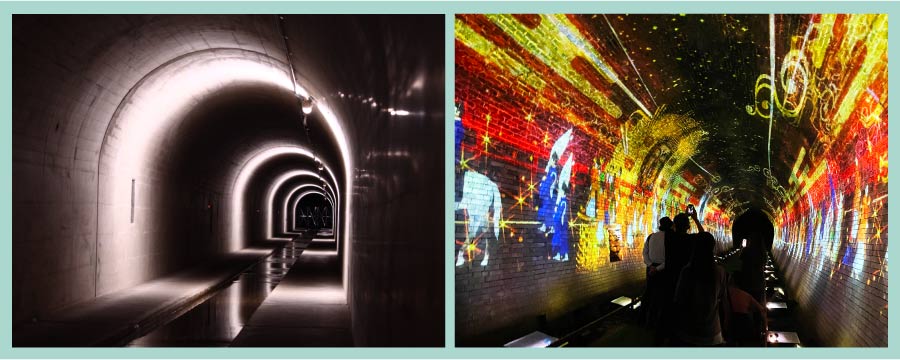 排水トンネルや亀の瀬トンネルでガイドの説明を聞きながら、一緒に入ることができます!また亀の瀬トンネルでは、幻の鉄道トンネルを駆け抜ける新感覚の「音と光のエンターテインメント」のプロジェクションマッピングも見学できますので、是非この機会にご体験を!
